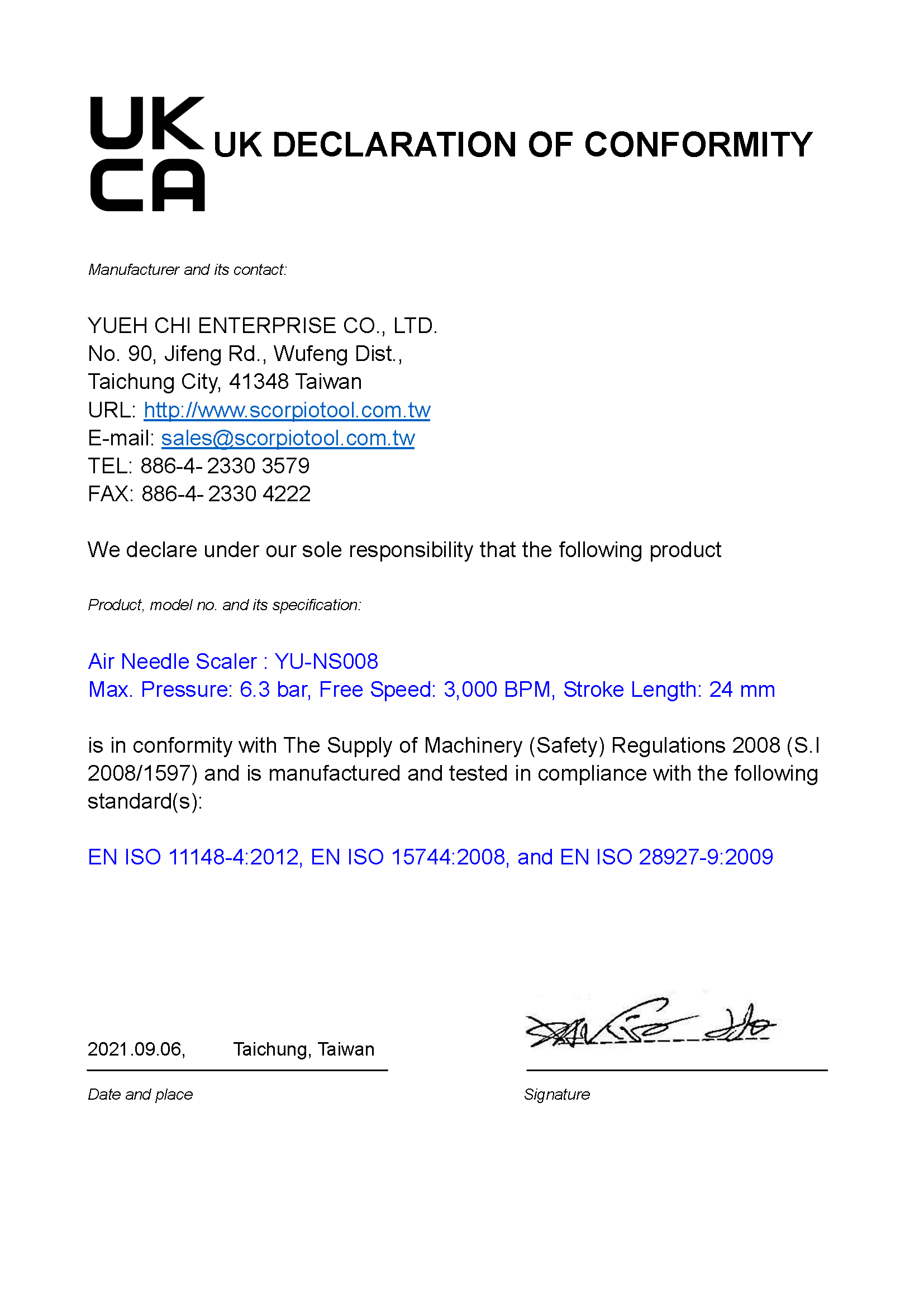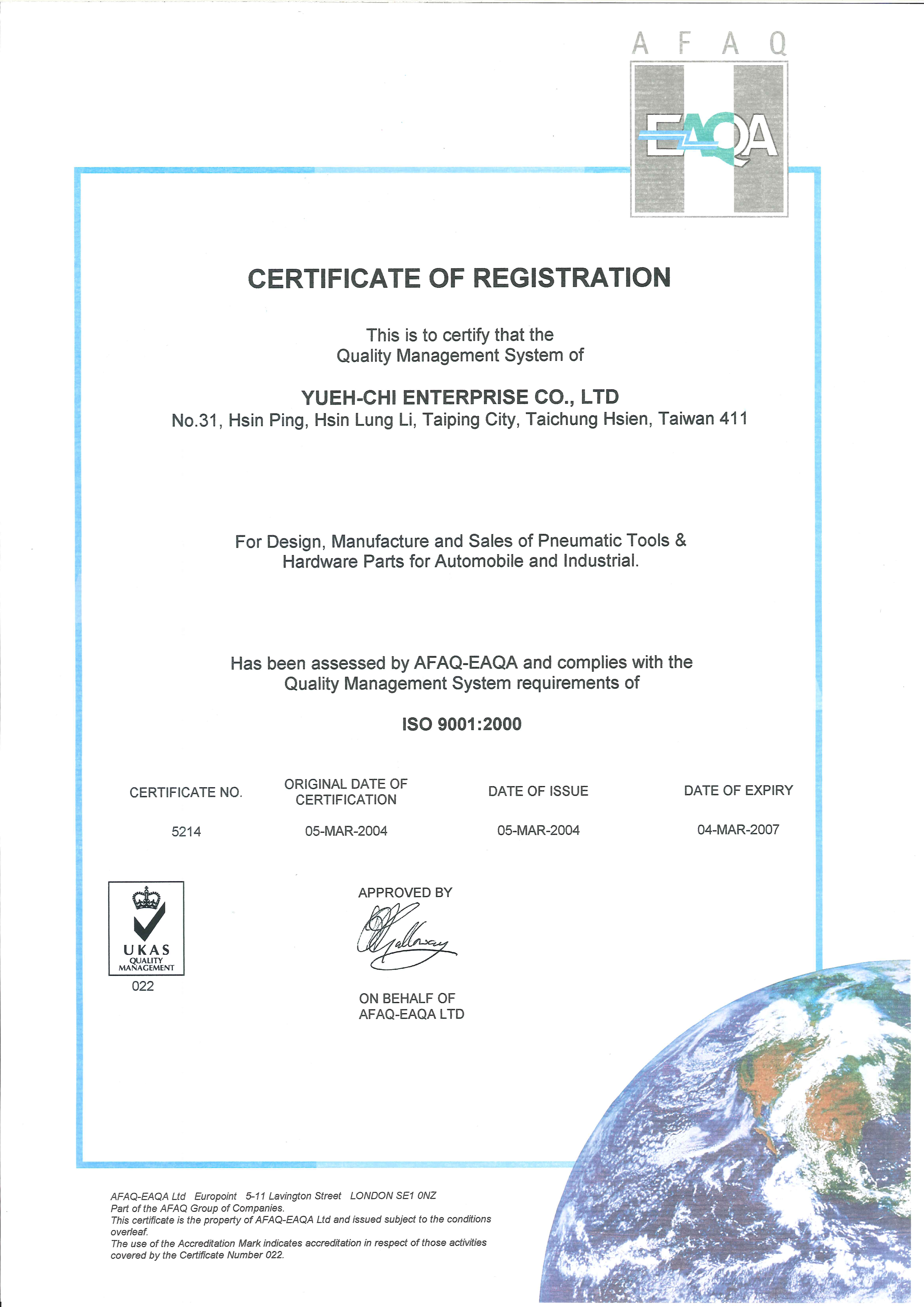 Mar. YUEH-CHI, SCORPIO was certified with ISO 9001-2000 certificate.