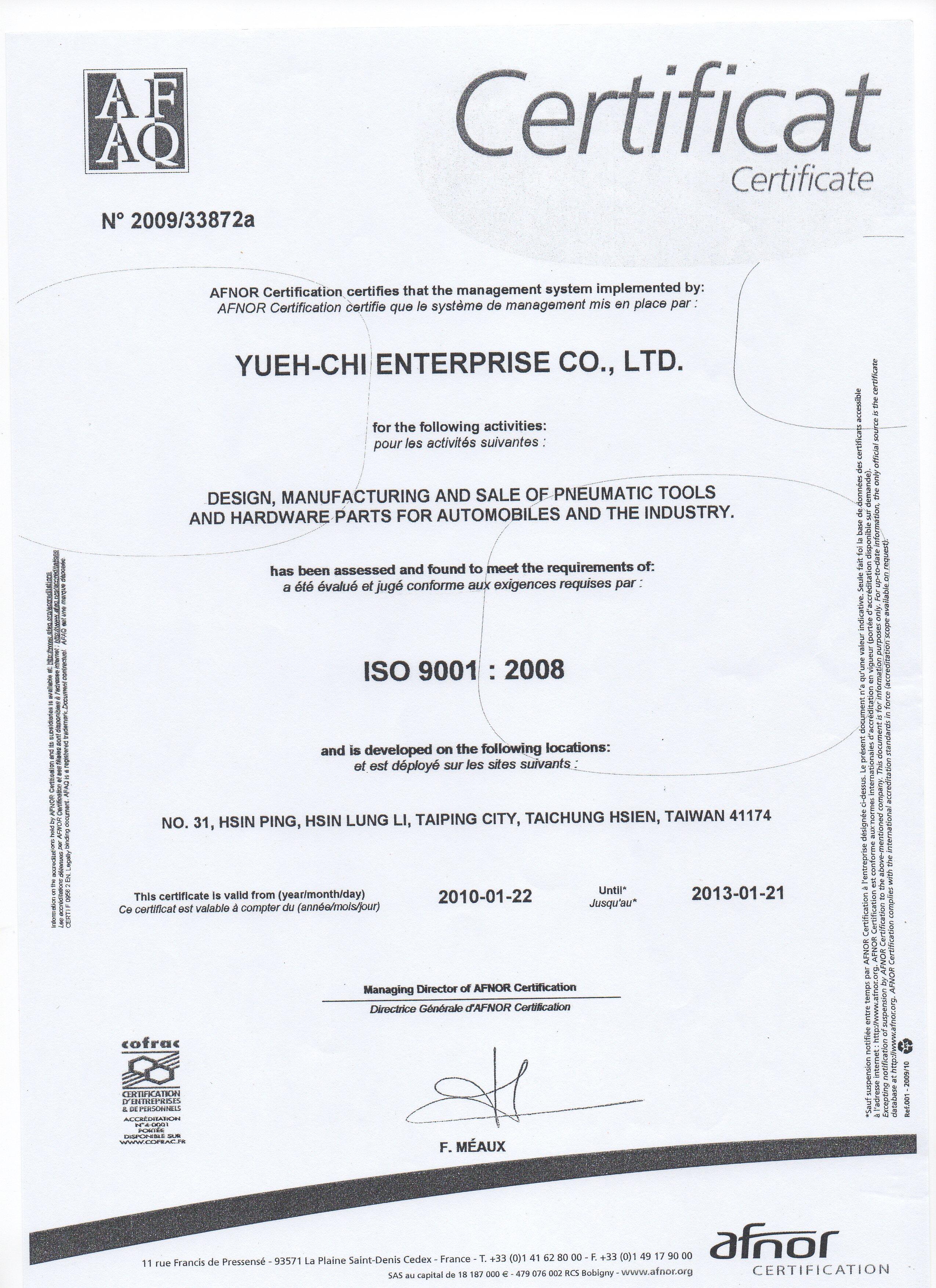 Jan. YUEH-CHI, SCORPIO was certified with ISO 9001-2008 certificate.